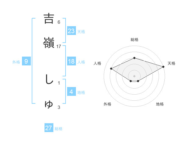 吉嶺 しゅさんの総格は27画の3点!