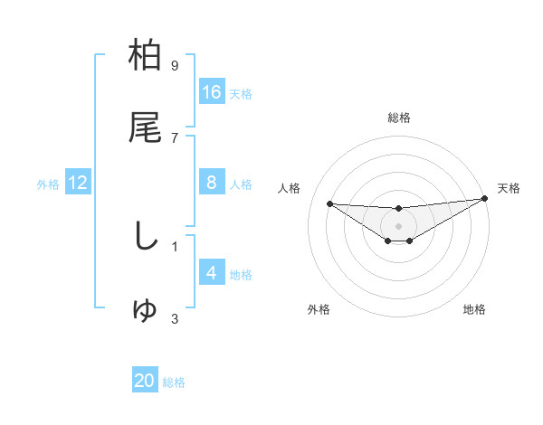 柏尾 しゅさんの天格は16画の5点!