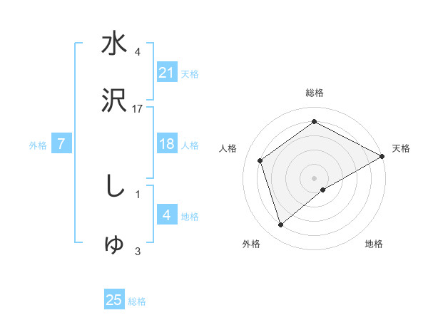 水沢 しゅさんを姓名の画数から五運を鑑定