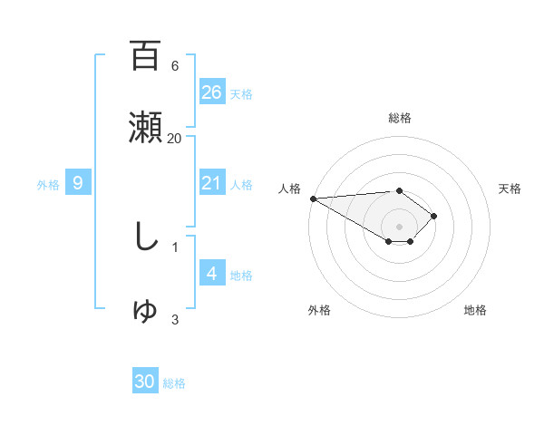 百瀬 しゅさんの天格は26画の2点!
