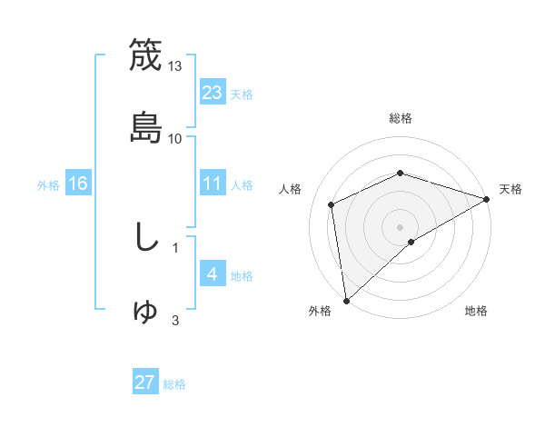 筬島 しゅさんの天格は23画の5点!