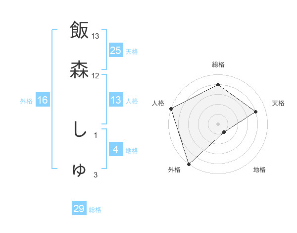 飯森 しゅさんの外格は16画の5点!