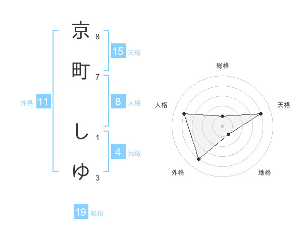 京町 しゆさんの天格は15画の4点!