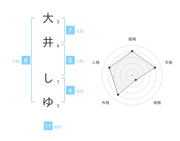 大井 しゆさんの総格は11画の4点!