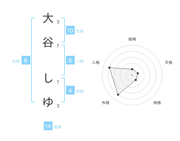 大谷 しゆさんの総格は14画の1点!