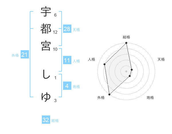 宇都宮 しゆさんを姓名の画数から五運を鑑定