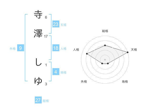 寺澤 しゆさんを姓名の画数から五運を鑑定