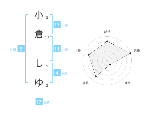 小倉 しゆさんを姓名の画数から五運を鑑定
