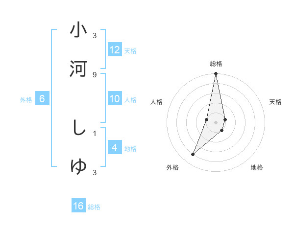 小河 しゆさんの外格は6画の4点!