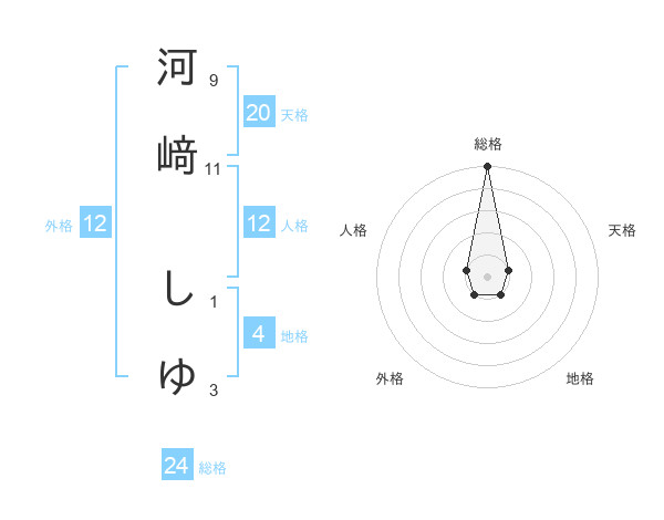 河﨑 しゆさんを姓名の画数から五運を鑑定