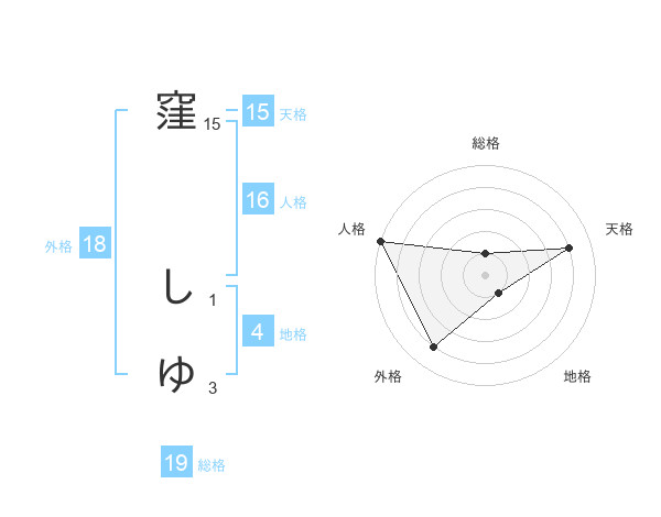 窪 しゆさんの天格は15画の4点!