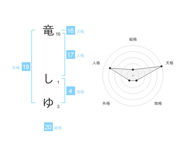 竜 しゆさんの総格は20画の1点!