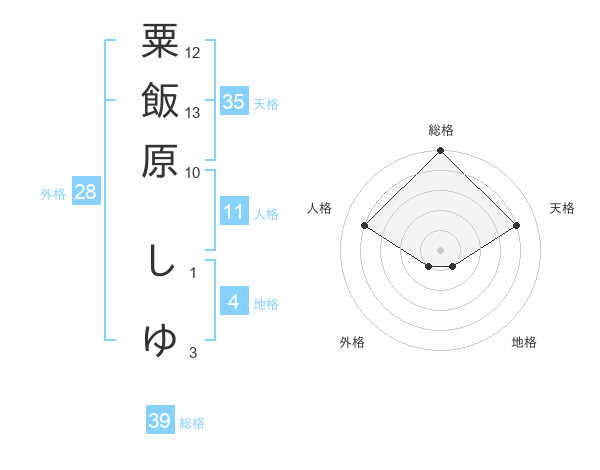 粟飯原 しゆさんを姓名の画数から五運を鑑定