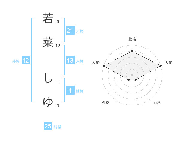 若菜 しゆさんの天格は21画の5点!