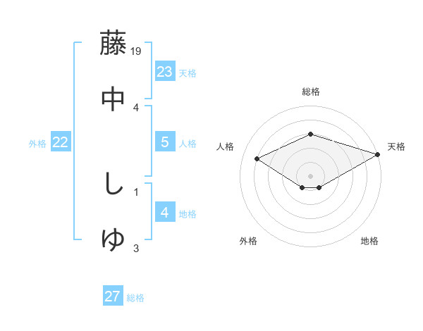 藤中 しゆさんの天格は23画の5点!