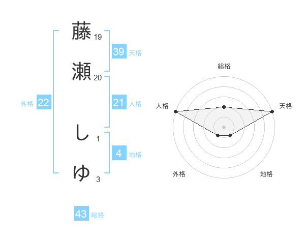 藤瀬 しゆさんの総格は43画の2点!