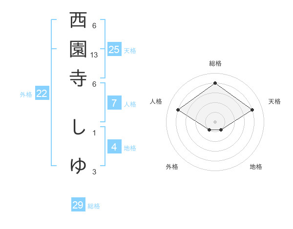 西園寺 しゆさんの総格は29画の4点!