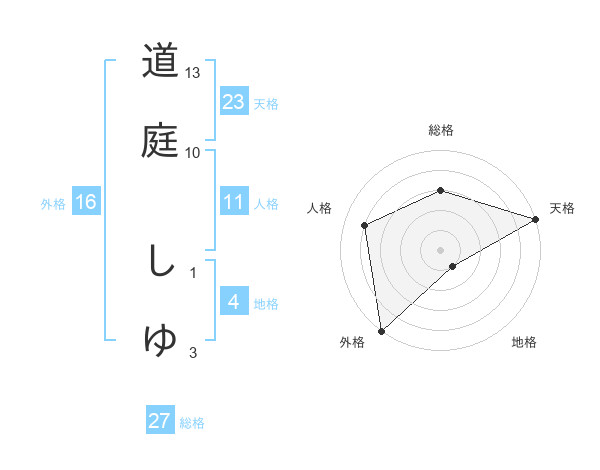 道庭 しゆさんの総格は27画の3点!