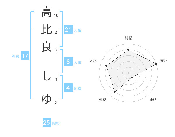 高比良 しゆさんを姓名の画数から五運を鑑定