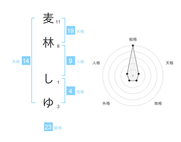 麦林 しゆさんを姓名の画数から五運を鑑定