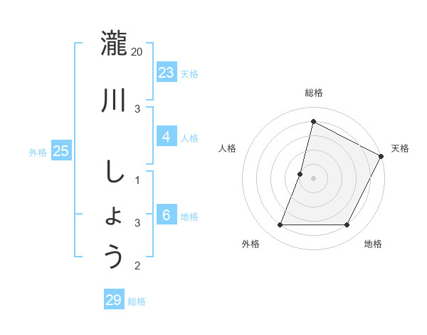 瀧川 しょうさんを姓名の画数から五運を鑑定