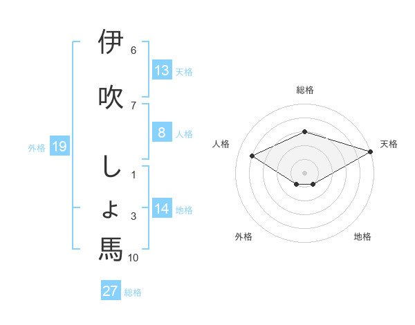伊吹 しょ馬さんの天格は13画の5点!