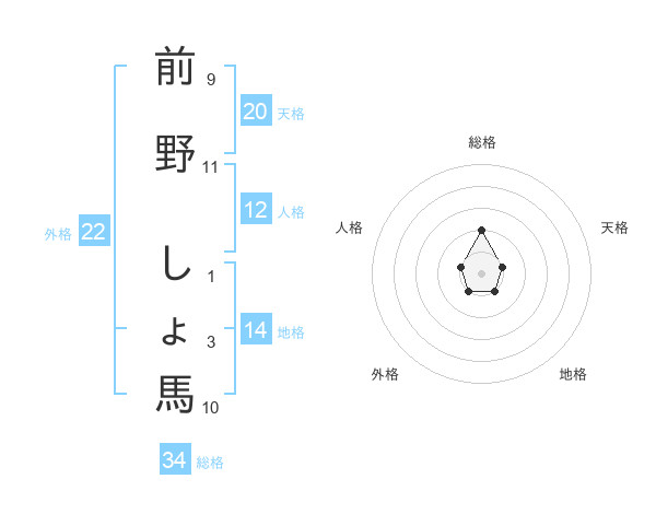 前野 しょ馬さんを姓名の画数から五運を鑑定