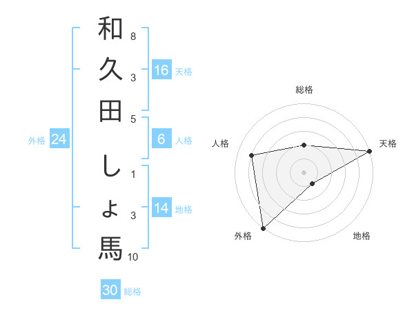 和久田 しょ馬さんの外格は24画の5点!