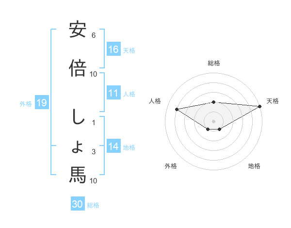 安倍 しょ馬さんの天格は16画の5点!