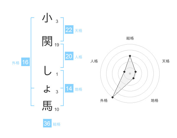 小関 しょ馬さんの外格は16画の5点!