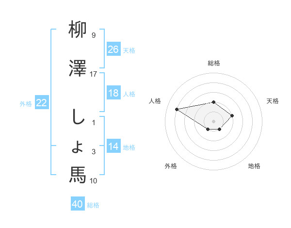 柳澤 しょ馬さんを姓名の画数から五運を鑑定