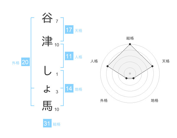 谷津 しょ馬さんを姓名の画数から五運を鑑定