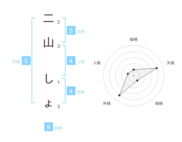 二山 しょさんの外格は5画の4点!