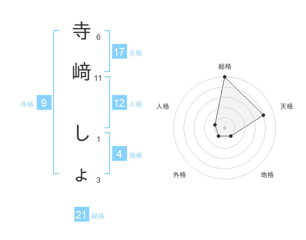 寺﨑 しょさんの総格は21画の5点!