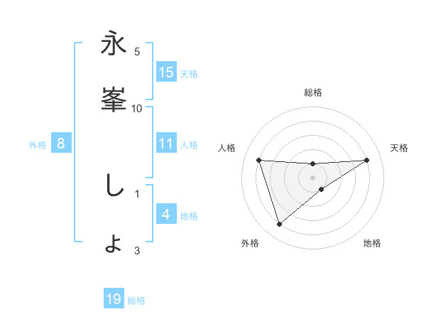 永峯 しょさんの天格は15画の4点!