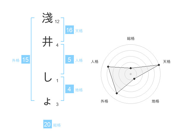 淺井 しょさんの天格は16画の5点!