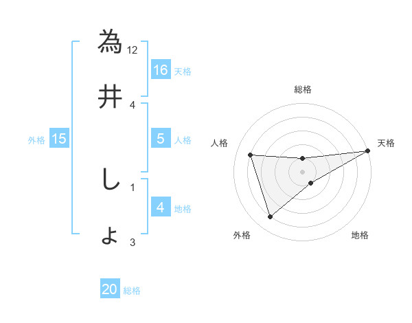 為井 しょさんの天格は16画の5点!