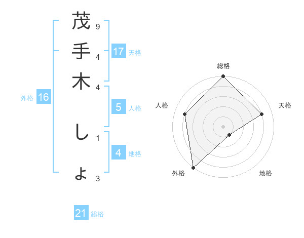 茂手木 しょさんを姓名の画数から五運を鑑定