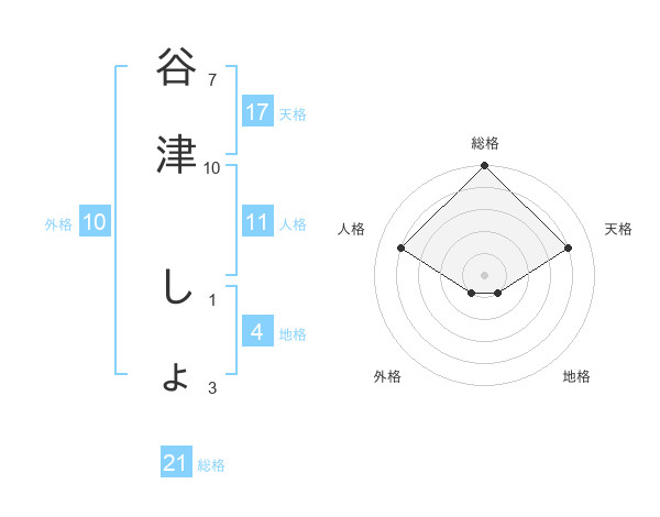 谷津 しょさんの総格は21画の5点!