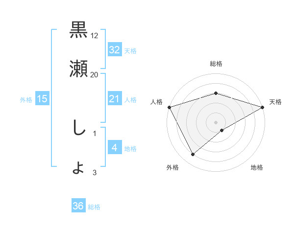 黒瀬 しょさんの天格は32画の5点!