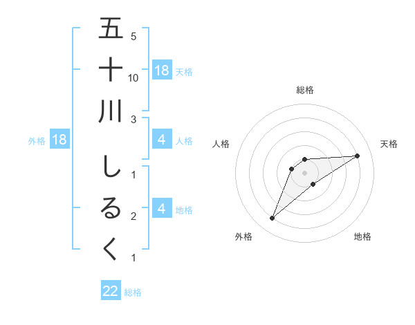五十川 しるくさんを姓名の画数から五運を鑑定