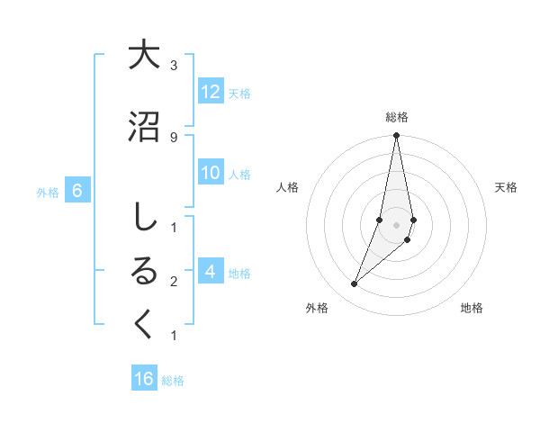 大沼 しるくさんを姓名の画数から五運を鑑定