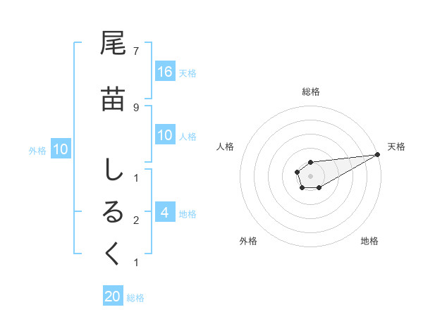 尾苗 しるくさんを姓名の画数から五運を鑑定