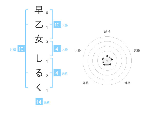 早乙女 しるくさんを姓名の画数から五運を鑑定