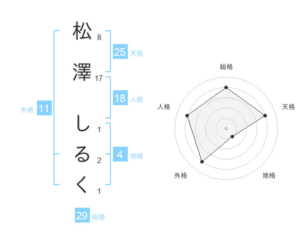 松澤 しるくさんを姓名の画数から五運を鑑定
