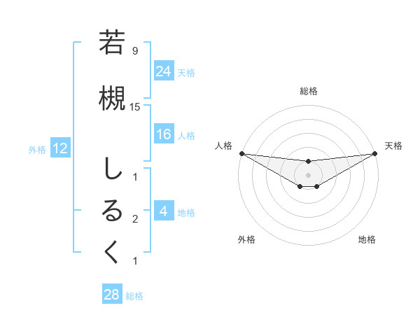 若槻 しるくさんの総格は28画の1点