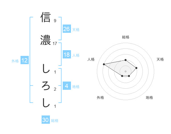 信濃 しろしさんを姓名の画数から五運を鑑定