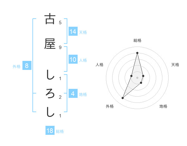 古屋 しろしさんの総格は18画の4点