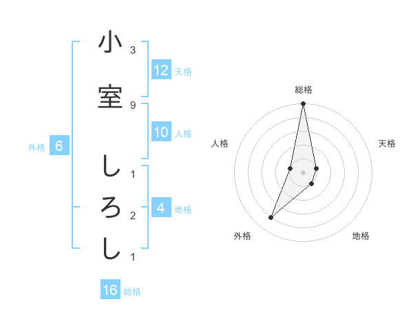 小室 しろしさんの外格は6画の4点!