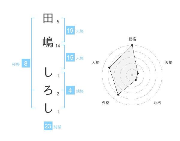 田嶋 しろしさんの総格は23画の5点!